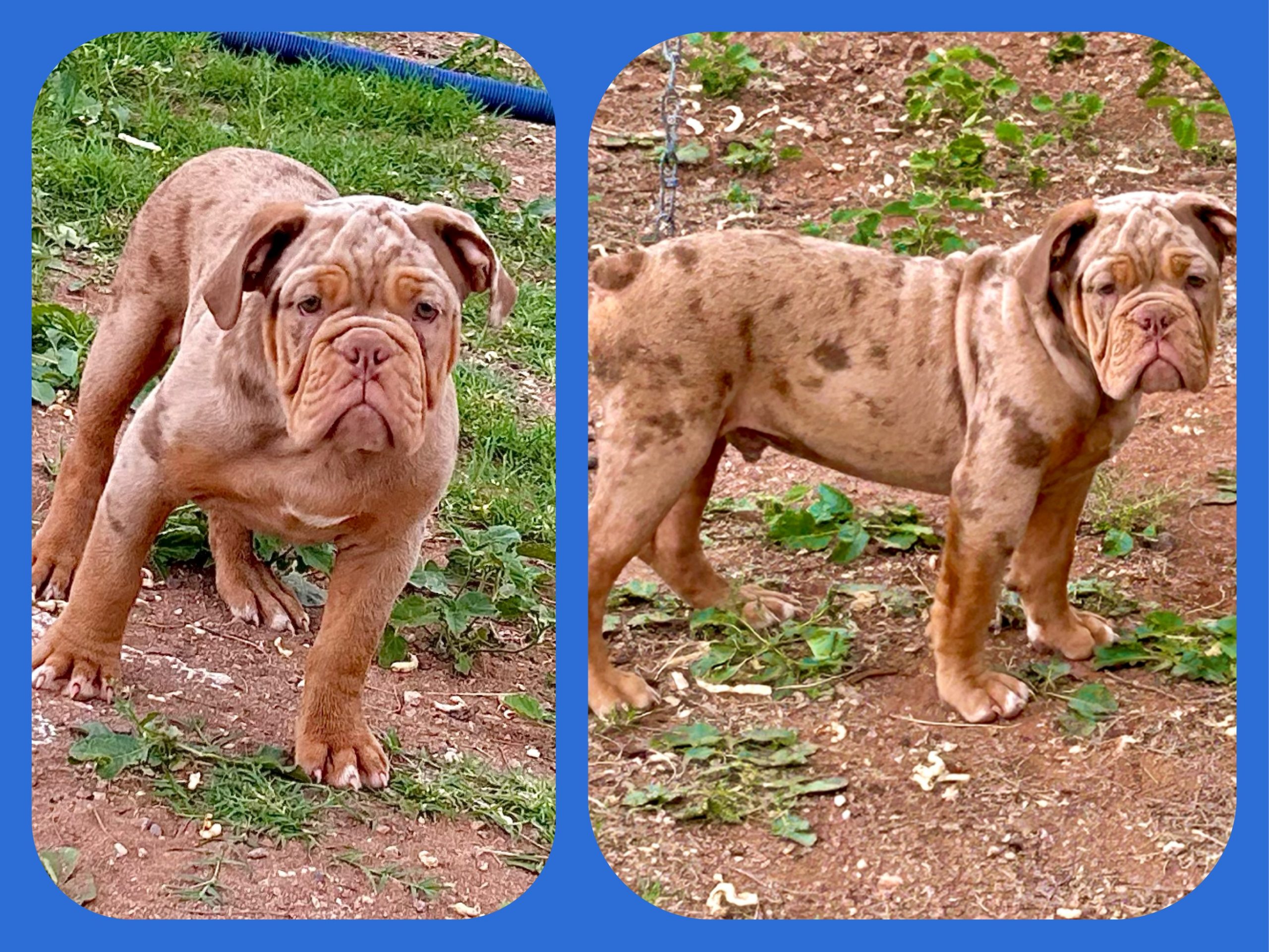 Amazing chocolate tri merle. Very rare and hard to produce. Will not be another dog on earth with the same pattern.  Dad is 90 plus pounds and mom is an amazing lilac tri.